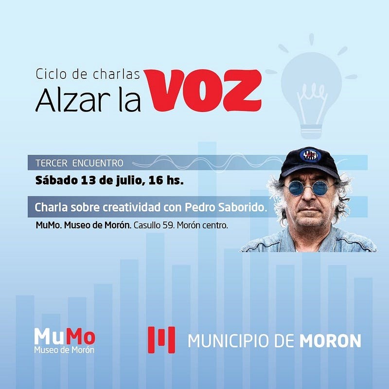 El próximo sábado 13 de julio, a las 16 hs, el escritor, guionista y productor Pedro Saborido se presentará en el Museo Morón (Casullo 59, Morón centro) como parte del tercer encuentro del ciclo de charlas “Alzar la Voz”. Durante el evento, Saborido compartirá sus experiencias sobre el proceso creativo en el programa “Peter Capusotto y sus videos”, abordando desde la escritura del guion hasta la producción y dirección.