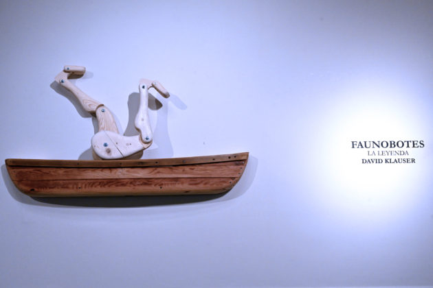 Klauser es un artista que trabaja con madera reciclada. Las piezas que presenta en la exhibición son ensambles articulados que fabrica en su taller.