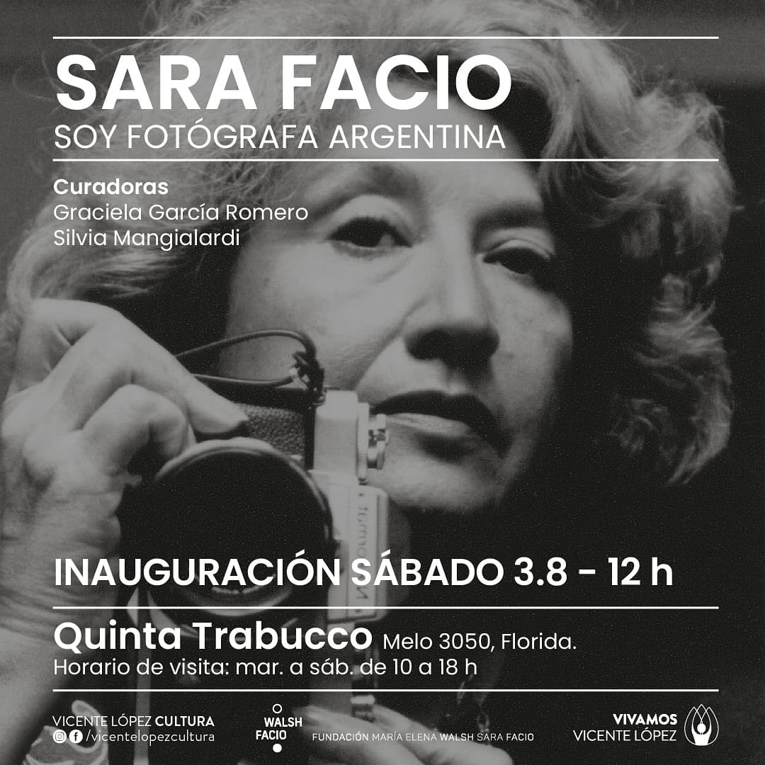La Secretaría de Cultura de Vicente López en conjunto con la Fundación María Elena Walsh-Sara Facio presentan la exposición en homenaje a la gran artista argentina Sara Facio “Soy fotógrafa argentina”, que se podrá visitar a partir del sábado 3 de agosto en Quinta Trabucco.