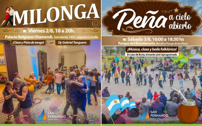 Este viernes 2/8 y sábado 3 de agosto, el Municipio invita a los vecinos a disfrutar de la milonga en el Palacio Otamendi, la peña folklórica en el Parque del Bicentenario, cine y humor en el Teatro Martinelli y una muestra artística en el Museo de la ciudad.