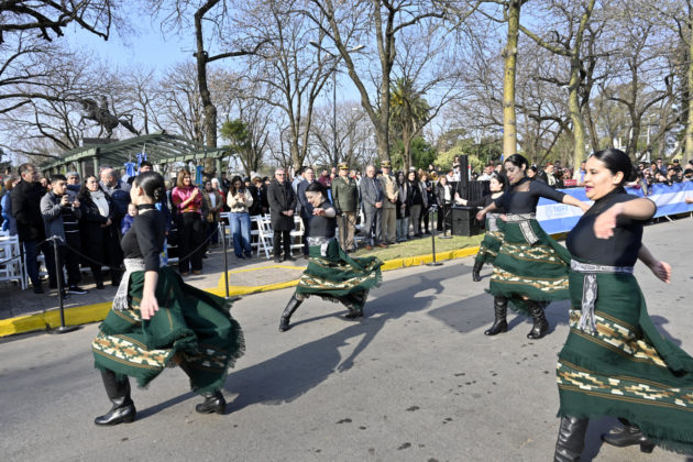 Durante el acto, además, el jefe comunal y el presidente de la Comisión Permanente de Homenaje al General San Martín, Roberto Romano, brindaron unas palabras a los presentes. Momentos después, se realizó el desfile que tuvo como protagonista a las fuerzas de seguridad, alumnos abanderados de diversas escuelas e instituciones de bien público de la comunidad. El cierre del acto contó con la presentación del Ballet Amaya.