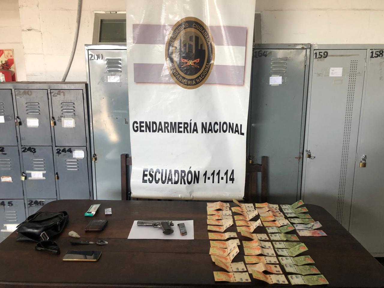 Al registrarlo, los gendarmes constataron que el ciudadano ocultaba dentro de un morral y entre prendas, un arma “Ballester Molina” Calibre 11.25 mm, sin documentación, dos cargadores y diez municiones para dicho armamento. Asimismo, también incautaron un celular y dinero en efectivo. De esta manera y tras consultar los antecedentes del individuo, los uniformados comprobaron que tenía pedido de captura vigente por “robo agravado por el uso de arma de fuego”, por lo que quedó inmediatamente detenido.