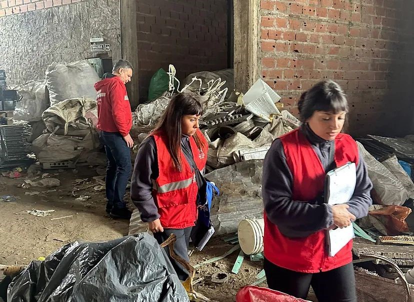 En Castelar, se inspeccionó un establecimiento el cual se encontraba cerrado, pero con evidentes signos de almacenamiento irregular de materiales reciclables, tales como cartones y bandejas de plástico.