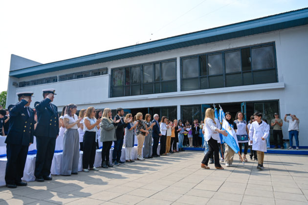 La actividad comenzó con el izamiento de la bandera nacional y el ingreso de los emblemas patrio y provincial portados y escoltados por alumnos de la escuela y los Bomberos Voluntarios de General Pacheco. Luego de las estrofas del Himno Nacional, brindaron sus palabras directivos, ex directivos y docentes de la escuela, quienes repasaron la historia del establecimiento. Por su parte, el intendente destacó a la educación pública como una herramienta fundamental para formar comunidad y encabezó la entrega de reconocimientos a maestras por su trayectoria.