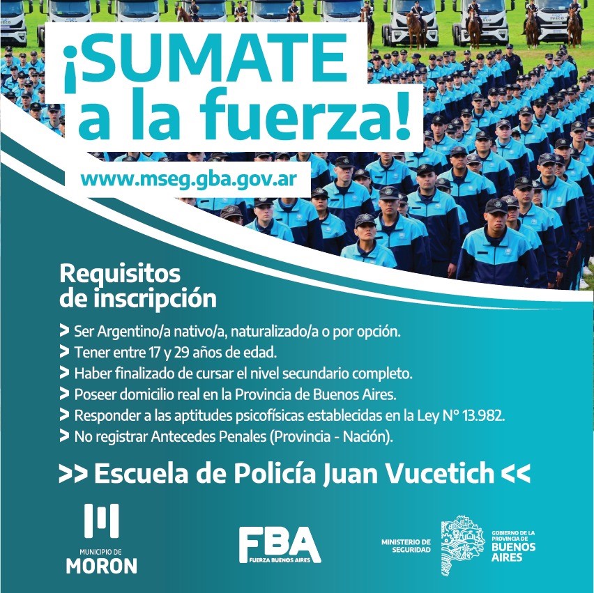 El Municipio de Morón invita a sumarse a la fuerza de seguridad de la Provincia de Buenos Aires.