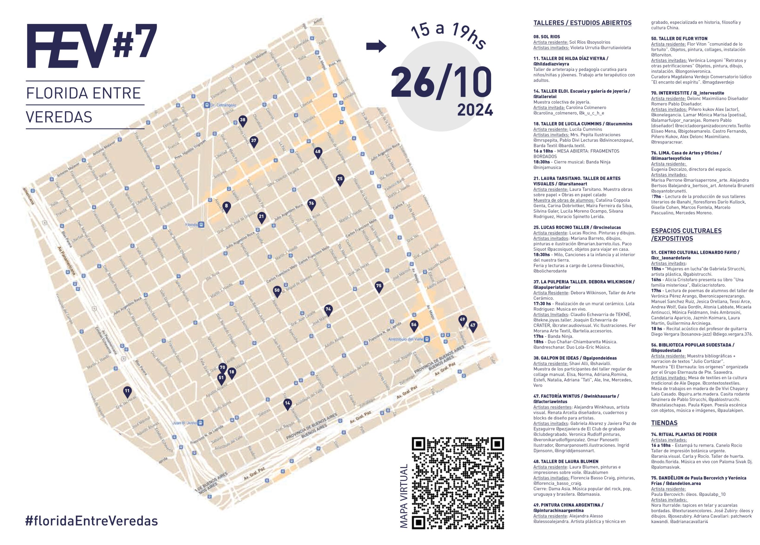 Florida Entre Veredas (FEV) te invita a caminar por las calles de Florida, abrir las puertas de los talleres, transitar por los procesos artísticos, degustar los sabores y saberes del barrio.