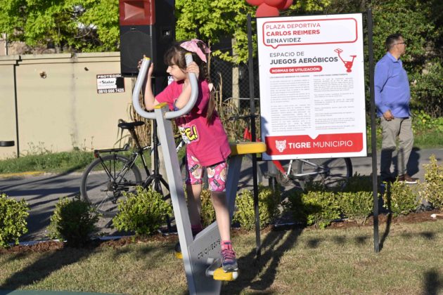 El intendente de Tigre, Julio Zamora, encabezó el acto de inauguración de la Plaza Deportiva «Carlos Reimers», ubicada en la Avenida Benavídez y la calle Ecuador, en localidad de Benavídez. Se trata del espacio público N°96 renovado por el Municipio, que cuenta con sectores aeróbicos, calistenia, mobiliario urbano, parquización e iluminación LED.