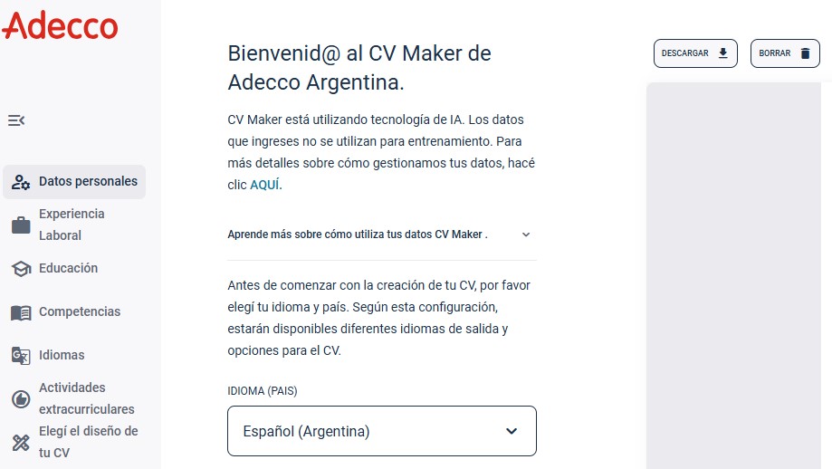 Con el objetivo de mejorar la empleabilidad en el país y facilitar la redacción y preparación del CV, Adecco Argentina desarrolló CV Maker. Es una herramienta producida a través de la Inteligencia Artificial con la premisa de facilitar esta tarea que es el primer eslabón en la búsqueda de empleo.