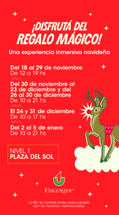 Desde el 18 de noviembre hasta el 5 de enero, Plaza del Sol se transformará en un espacio lleno de espíritu navideño con Regalo Mágico, un espacio lúdico y lleno de fantasía. Los visitantes podrán interactuar con diversas ambientaciones que los conectarán con la alegría y el espíritu navideño, haciendo de esta experiencia algo inolvidable para disfrutar en familia.