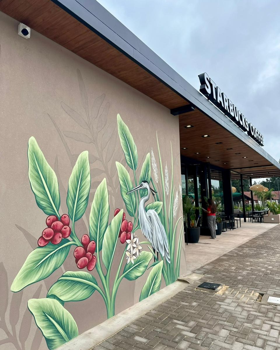 Los murales fueron realizados por la artista local RoF Varela, inspirados en la diversidad de Nordelta integrando también la planta de café para unir estos dos mundos. En los murales están representadas la garza blanca, la tacuarita azul y las mariposas monarca, tres especies autóctonas del delta, así como también aparecen las cortaderas (plumerillos), la flor de la pasionaria, los lirios, la salvia guaranítica (planta violeta) y la Solidago (amarilla).