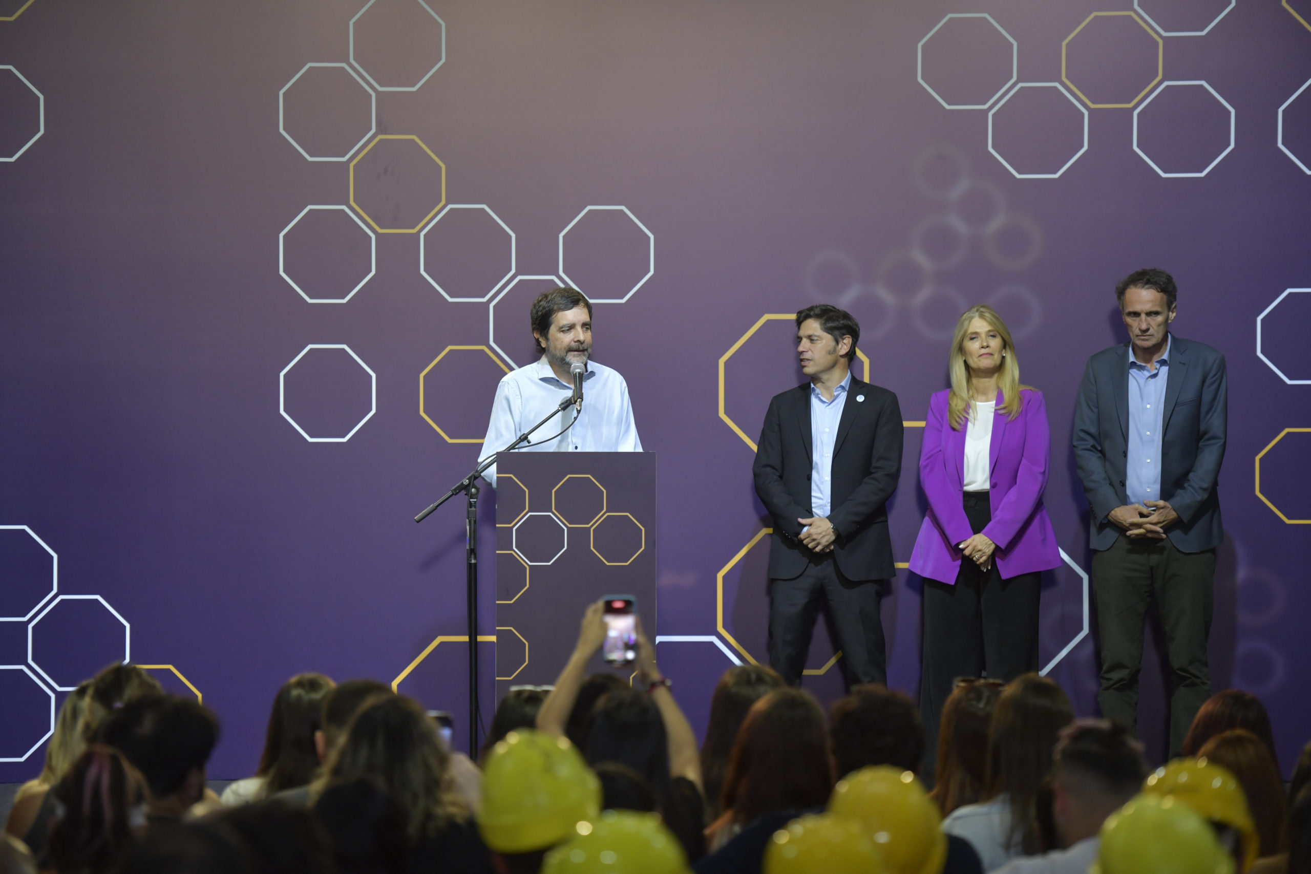 También estuvieron presentes miembros del gabinete provincial; intendentes e intendentas bonaerenses; diputados y diputadas nacionales; legisladores provinciales; referentes sindicales; representantes de movimientos sociales y estudiantiles