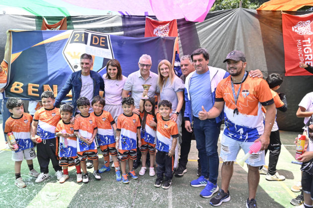 En un clima de festejo y alegría, el intendente de Tigre, Julio Zamora y la secretaria de Desarrollo Social y Políticas de Inclusión, Gisela Zamora, entregaron los trofeos correspondientes a las ligas municipales de Baby Fútbol y Fútbol Femenino. El encuentro, del que participaron cientos de vecinos y vecinas, se realizó en el Polideportivo Zabala de Benavídez.