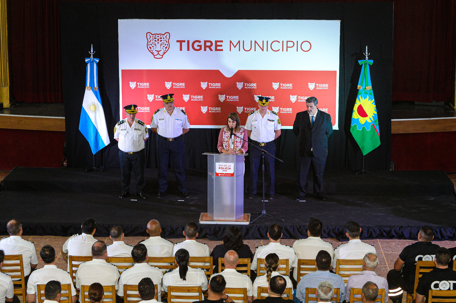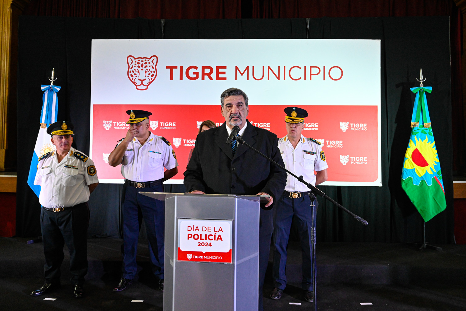 «Hoy es un día especial para la familia policial. Siempre es un orgullo vestir el uniforme y representar a la Policía de Tigre que lleva adelante un trabajo mancomunado que se hace con el Municipio y con el Ministerio de Seguridad del cual estoy orgulloso de poder pertenecer», indicó el jefe departamental de la ciudad, Juan Marcos Peralta López.or la oportunidad que me dio Tigre en estos 25 años de profesión”.