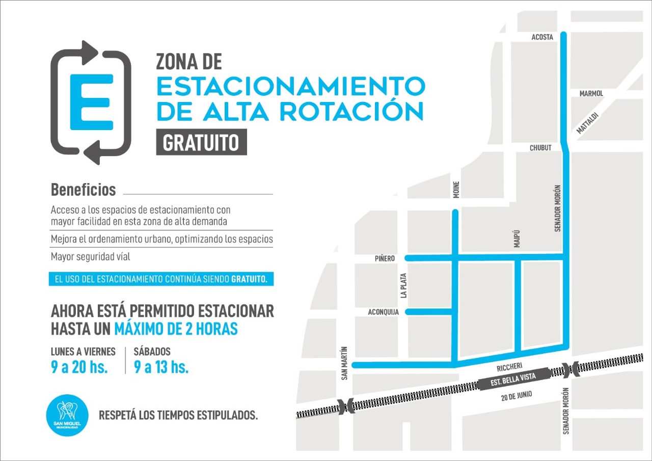 Será gratuito y permitirá hasta dos horas de permanencia en áreas comprendidas y debidamente identificadas sobre Av Riccheri, Av Senador Morón, Piñero y Moine, siendo multados aquellos autos que incumplan el límite de tiempo.