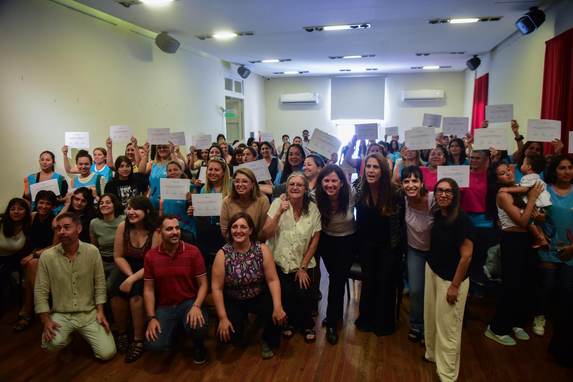 «Reconocemos a estas 50 mujeres comprometidas con las labores de cuidado de niños y niñas en los CDI, que dedicaron su tiempo a formarse y capacitarse. Nuestro intendente Ariel Sujarchuk tiene la firme decisión de fortalecer todas las acciones vinculadas a mejorar la calidad de vida de los vecinos y vecinas del partido de Escobar”, expresó la presidenta del Concejo Deliberante de Escobar, María Laura Guazzaroni, en el acto de entrega de certificados que se realizó en el Teatro Seminari.