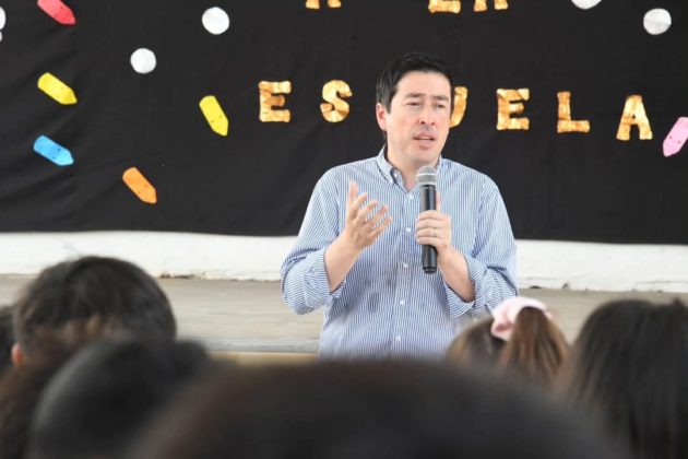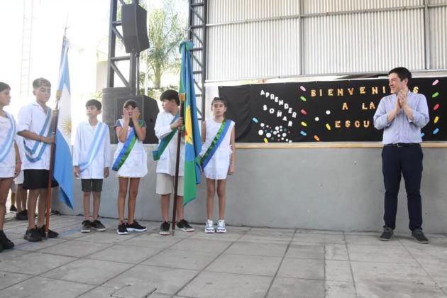 Acompañado por las autoridades del colegio y del municipio, el intendente se tomó un momento especial para compartir un sentido mensaje para los estudiantes presentes: «Qué lindo momento saludar a todos los niños y niñas que arrancan primer grado; y a todos en realidad. No hay nada más lindo que ser niño, poder ir a la escuela y educarse, y pasar un momento en la escuela donde tenemos formación, tenemos contención, hacemos amigos, aprendemos a compartir, aprendemos a ser solidarios, y aprendemos a prepararnos para el futuro, pero divirtiéndonos, jugando, pasándola lindo».
