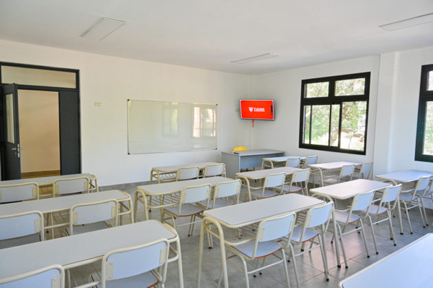 La flamante remodelación del espacio consta de un total de 350 m2, donde se construyeron cuatro aulas, ingreso independiente de primaria y secundaria y salas de dirección, auxiliares y preceptores. En la segunda etapa, el Municipio de Tigre proyecta la redacción integral de los baños.