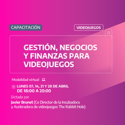 En relación a los videojuegos, se ofrecerá el curso “Gestión, negocios y finanzas para videojuegos”, que abordará de manera integral los desafíos y oportunidades que presenta esta creciente industria. Se analizarán los diversos modelos de monetización, comercialización y ciclos de vida de los productos, así como las metodologías ágiles de gestión de proyectos y desarrollo de software aplicadas al sector. Estará a cargo de Javier Brunet, Co Director de la Incubadora y Aceleradora de videojuegos The Rabbit Hole. Será los lunes 7, 14, 21 y 28 de abril, de 18:00 a 20:00.