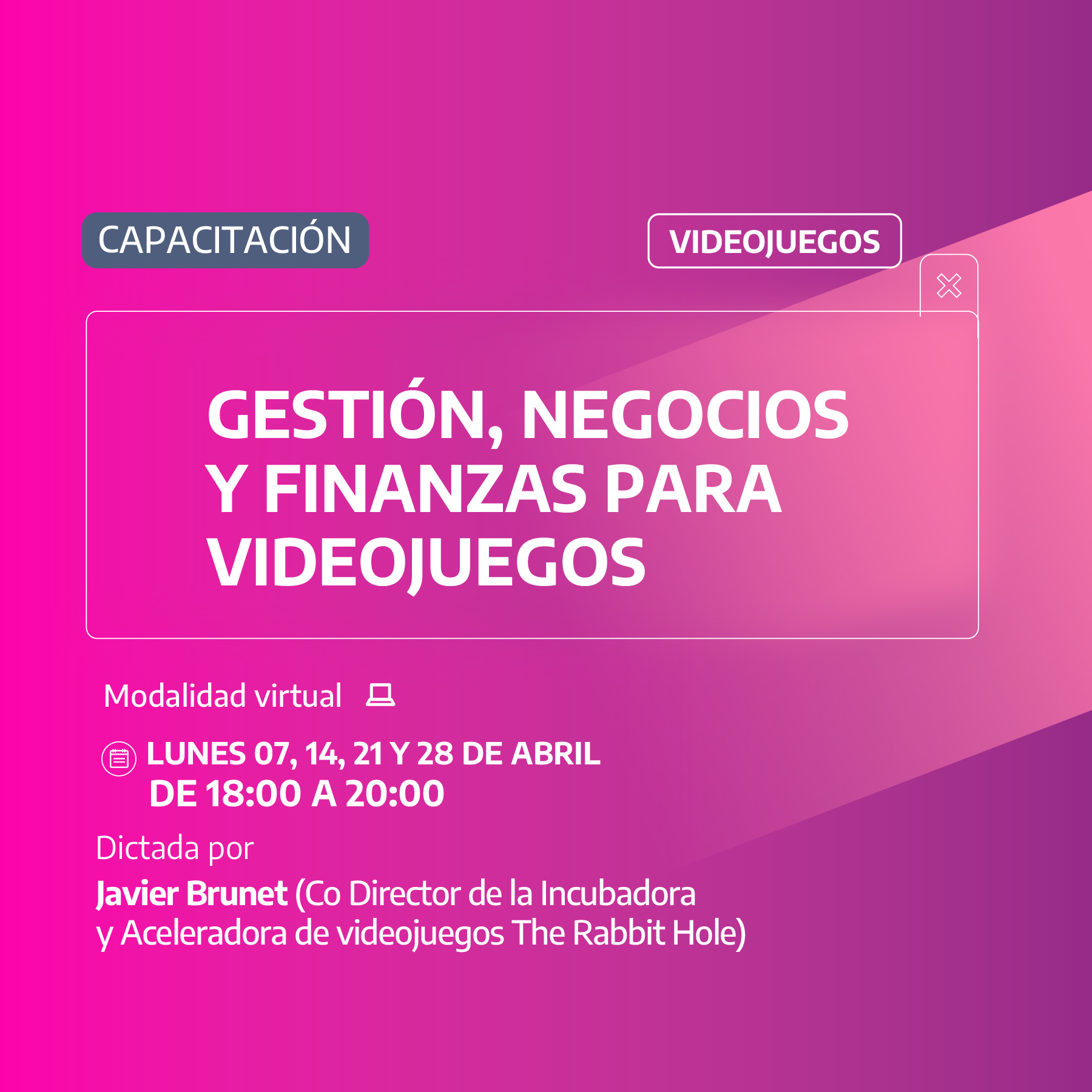 En relación a los videojuegos, se ofrecerá el curso “Gestión, negocios y finanzas para videojuegos”, que abordará de manera integral los desafíos y oportunidades que presenta esta creciente industria. Se analizarán los diversos modelos de monetización, comercialización y ciclos de vida de los productos, así como las metodologías ágiles de gestión de proyectos y desarrollo de software aplicadas al sector. Estará a cargo de Javier Brunet, Co Director de la Incubadora y Aceleradora de videojuegos The Rabbit Hole. Será los lunes 7, 14, 21 y 28 de abril, de 18:00 a 20:00.