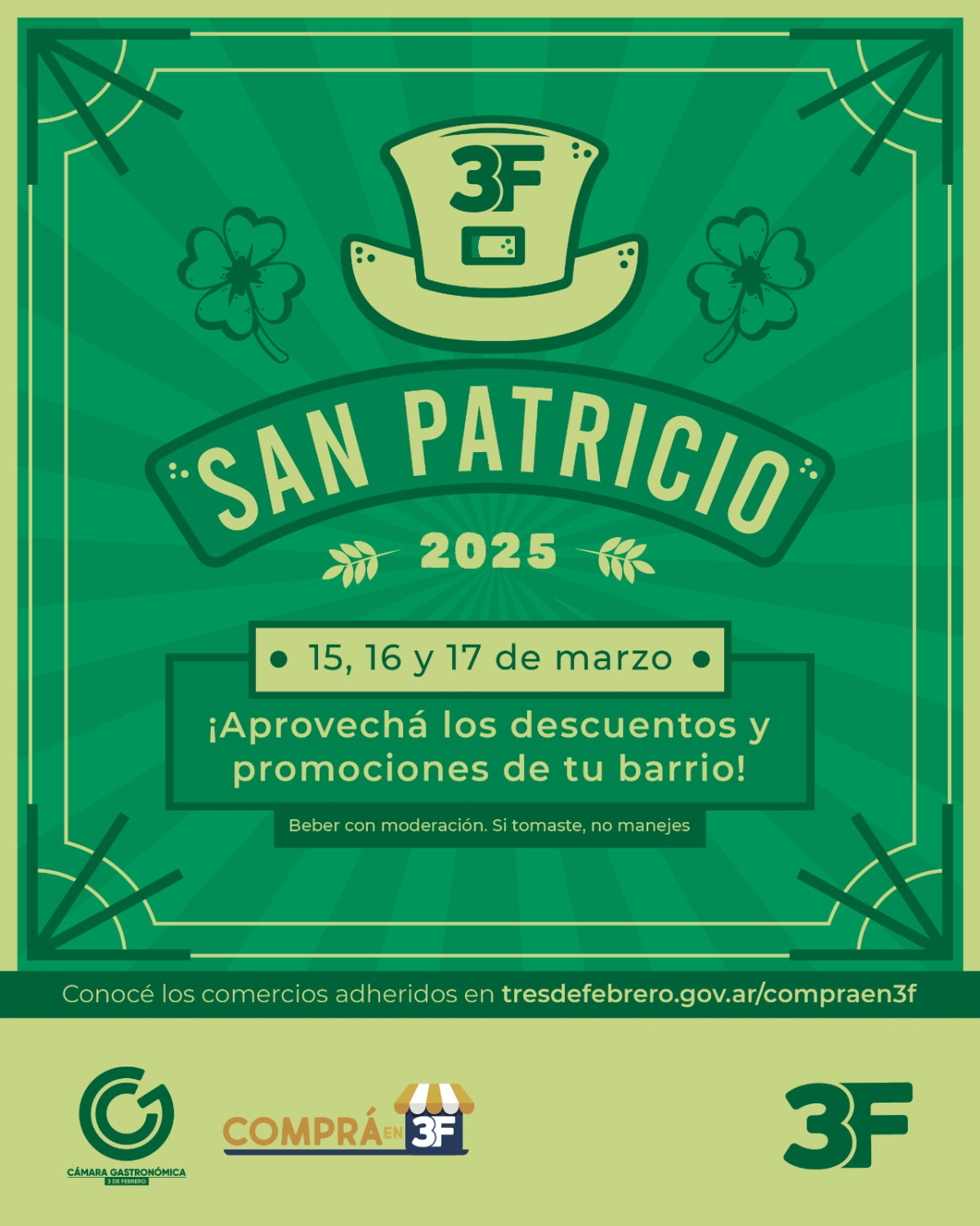Con el objetivo de promover las ventas locales, queremos contarte las propuestas que podés encontrar en Tres de Febrero del 15 al 17 de marzo para celebrar San Patricio. Te dejamos un listado de comercios dónde podés probar bebidas con los sabores más originales. Si querés sumar tu comercio ingresá acá.