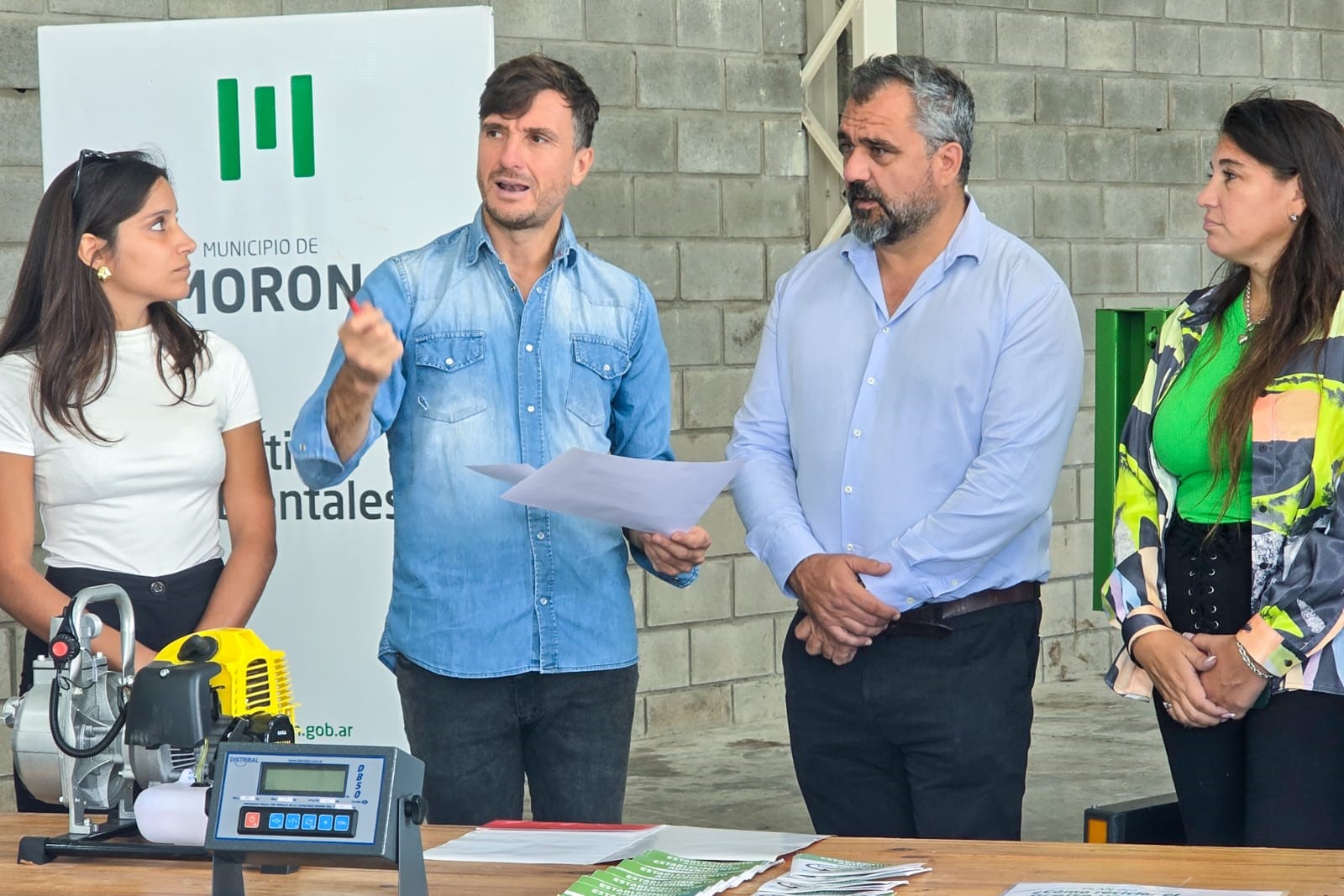 La entrega, realizada esta mañana en la Planta, ubicada en Morón Sur, incluyó una motobomba, dos balanzas, una grúa de carga y cestos para la separación en origen en instituciones. Estos elementos serán destinados a mejorar el trabajo en la gestión integral de residuos.