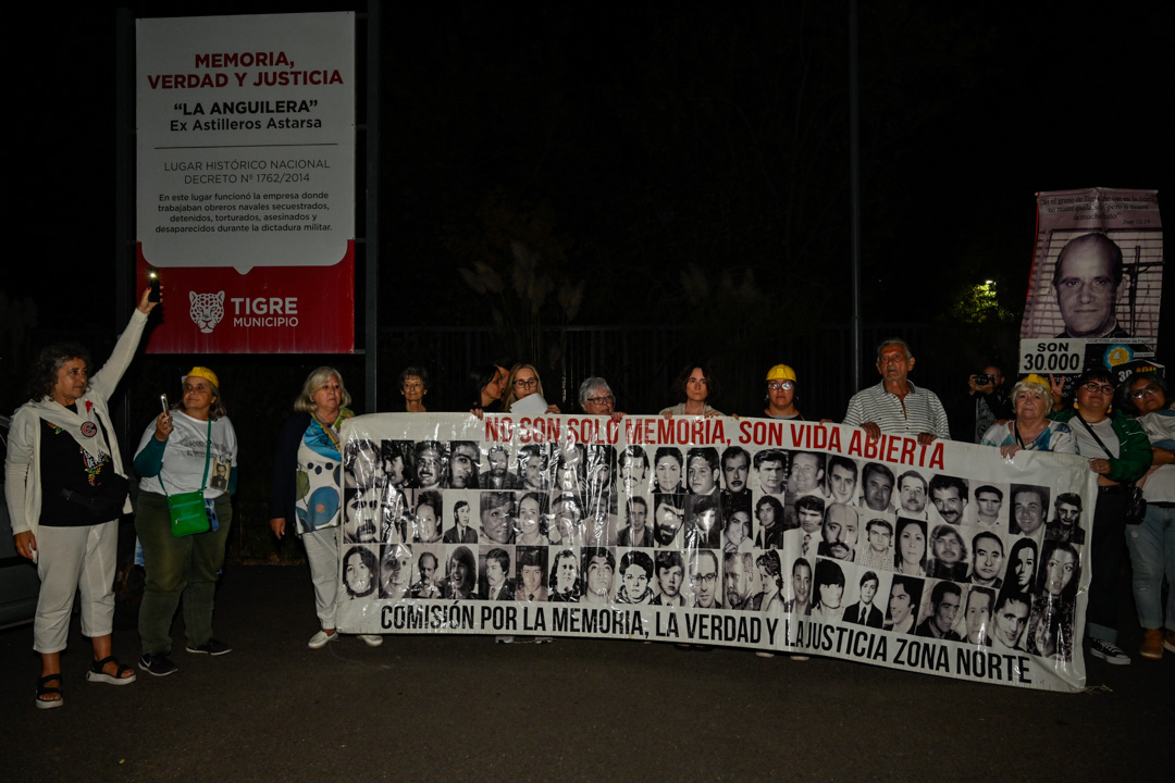 En homenaje a los trabajadores del ex astillero Astarsa que fueron víctimas de la última dictadura cívico-militar, la Comisión de Memoria, Verdad y Justicia de Zona Norte llevó adelante una marcha desde la Plaza América Latina hasta el predio donde funcionaba la empresa. El acto contó con la participación del intendente de Tigre, Julio Zamora, referentes de los Derechos Humanos, familiares de desaparecidos, ex empleados de la fábrica, agrupaciones sociales, vecinos y vecinas.