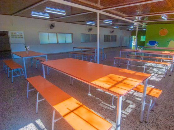 Y el edificio de primaria se puso en valor, remodelando los vestuarios y sanitarios en planta de aulas, incluyendo cañerías de agua, desagües, artefactos, revestimientos, solados y cielorrasos. Se repararon grietas, rajaduras y desperfectos en revoques, se sellaron filtraciones en las cubiertas y se cambiaron puertas en mal estado en aulas y entrada al SUM.