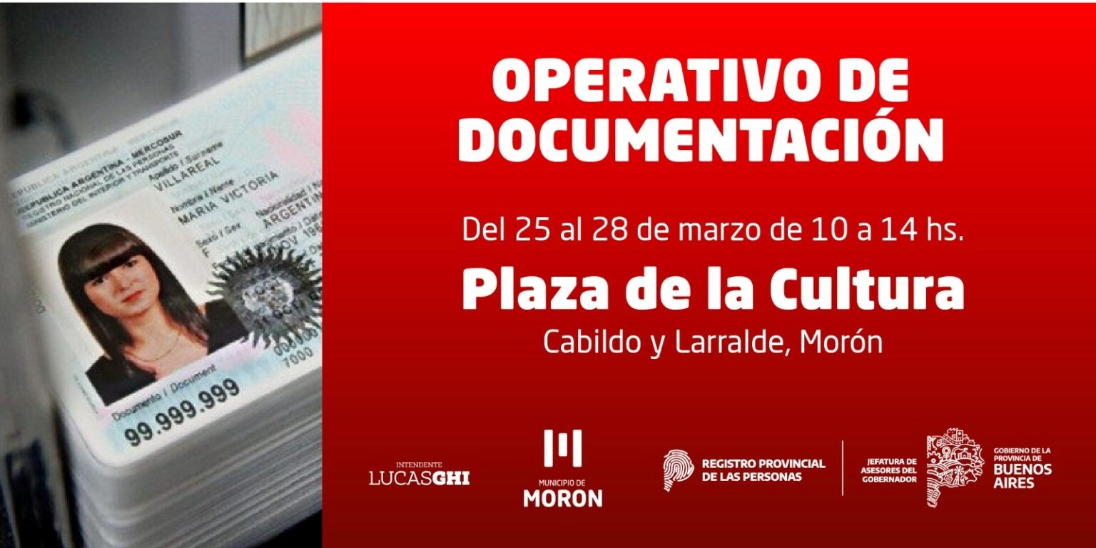 Desde hoy y hasta el viernes 28 de marzo, vecinos y vecinas podrán acercarse a la renovada Plaza de la Cultura (Cabildo y Crisólogo Larralde, Morón centro) para gestionar trámites como DNI, expedición de partidas, cambios de género, rectificaciones. En el mismo operativo se ofrecerán servicios relacionados con el programa “Mi Identidad, Mi Derecho” y asesoramiento sobre casos NN.