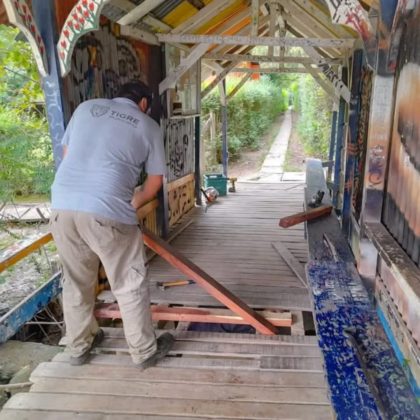 Se trata de labores en el paso de acceso al muelle público de Arroyo Reyes sobre Río Sarmiento, destinado a garantizar la seguridad de los peatones. Además, la cuadrilla ejecutó trabajos de reparación y mantenimiento en el muelle público El Felipe sobre el Río San Antonio.