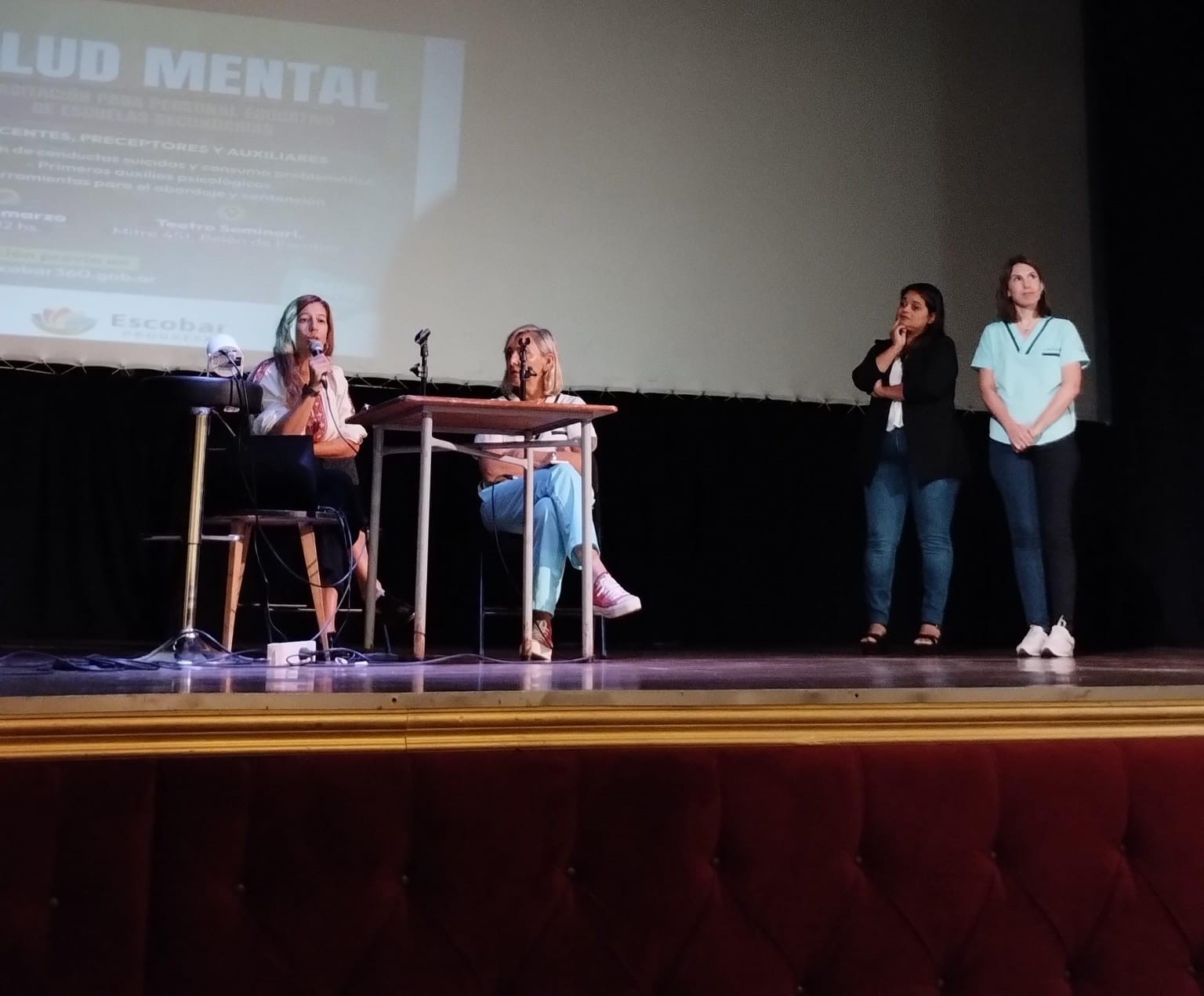 La capacitación, que tuvo lugar en el Teatro Seminari, abordó técnicas de primeros auxilios psicológicos, la detección de conductas suicidas y consumos problemáticos, y herramientas para su contención. Estuvo a cargo de Noelia Mena Rique, licenciada en psicopedagogía, psicología y fonoaudiología, y especialista en evaluación neurocognitiva, y de Ivanna Coronel, licenciada en psicología, especializada en neuropsicología y tratamiento de la conducta. Además, contó con la presencia de la directora del Centro de Salud Mental y Adicciones Papa Francisco, Victoria Larrosa y la subsecretaria de educación, Victoria Serruya.