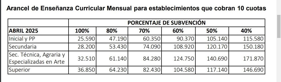 A través de la comunicación del área educativa provincial se fijaron los nuevos topes que tendrán permitidos aplicar las instituciones que reciben ayuda estatal.