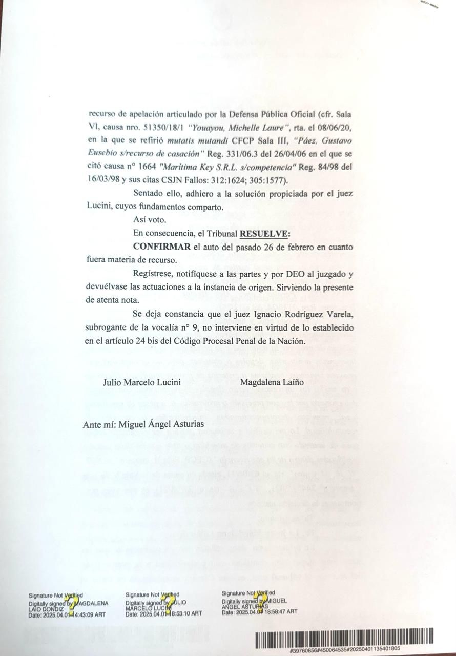 No obstante, la Sala VI del tribunal desestimó todos los agravios de la defensa y respaldó la constitucionalidad de la medida, afirmando que se trata de una diligencia legítima, proporcionada y ajustada a derecho, con fundamento en el interés público y la necesidad de fortalecer las investigaciones penales.