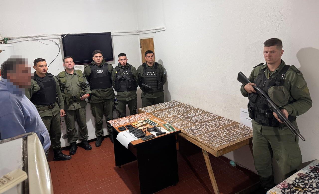 Además, hallaron 12 envoltorios con 18 gramos de marihuana, cinco handys y una pistola Bersa Thunder 9 mm perteneciente a la Policía de la Provincia de Buenos Aires que poseía solicitud de secuestro por robo en noviembre del año pasado.