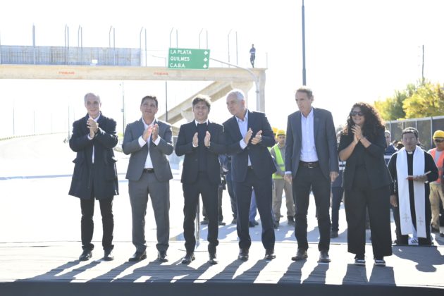 El gobernador de la provincia de Buenos Aires, Axel Kicillof, encabezó este martes el acto de inauguración de la nueva bajada de la Avenida 520 en la Autopista Buenos Aires – La Plata, que llevará el nombre de Papa Francisco en homenaje al sumo pontífice quien falleció en el día de ayer. Fue junto al ministro de Infraestructura y Servicios Públicos, Gabriel Katopodis; de Transporte, Martín Marinucci; el presidente de AUBASA, José Arteaga; y el intendente local, Julio Alak.