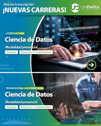 En la página web www.undelta.edu.ar se encuentra la información para la inscripción a licenciaturas y tecnicaturas orientadas a los desafíos productivos, sociales y ambientales de la región de de San Fernando, Tigre y Escobar. Ciencia de Datos, Relaciones Internacionales, Gestión de Instituciones Educativas, y Turismo y Desarrollo Sostenible se pueden estudiar de forma presencial en la sede de Av. Avellaneda 2270, Virreyes.