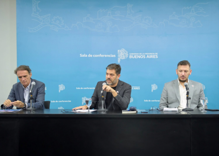 El Ministro de Gobierno bonaerense brindó una rueda de prensa junto a su par de Infraestructura y Servicios Públicos, Gabriel Katopodis, y el presidente del Banco Provincia, Juan Cuattromo.