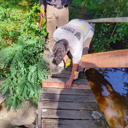 La cuadrilla del Gobierno local llevó adelante reparaciones en puentes, muelles públicos y luminarias. A su vez, se ejecutaron tareas de limpieza y parquización en la Escuela Primaria Nº9.