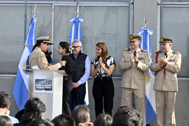 Y agregó: “La imposición del nombre tuvo que ver con una tarea comunitaria de todo el barrio y de los estudiantes que en conjunto hicieron un proceso participativo que culminó en la denominación de esta escuela con el nombre del Cabo Segundo Jorge López».
