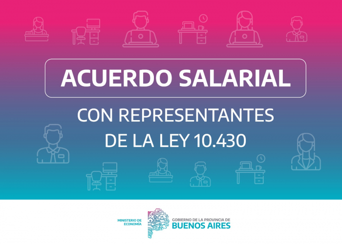 El Gobierno de la provincia de Buenos Aires, cumpliendo sus compromisos aún en un contexto de dificultad financiera provocada por las políticas del Gobierno nacional, ofertó a los gremios que nuclean a las y los trabajadores de la Ley 10430 y docentes de la Provincia dos nuevos tramos de aumento salarial de 6% en mayo y 4% en julio, respecto de los haberes vigentes al mes de marzo.