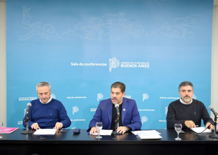 El ministro de Gobierno de la Provincia de Buenos Aires, Carlos Bianco, su par de Desarrollo de la Comunidad, Andrés Larroque, y el director ejecutivo de ARBA, Cristian Girard, brindaron hoy la habitual conferencia de prensa de los lunes, en la que presentaron detalles de la organización de las elecciones provinciales del 7 de septiembre, informaron sobre los programas de asistencia alimentaria del Estado bonaerense y expresaron la posición del Gobierno provincial sobre el “Plan de reparación histórica de los ahorros de los argentinos” anunciado por el Gobierno nacional.