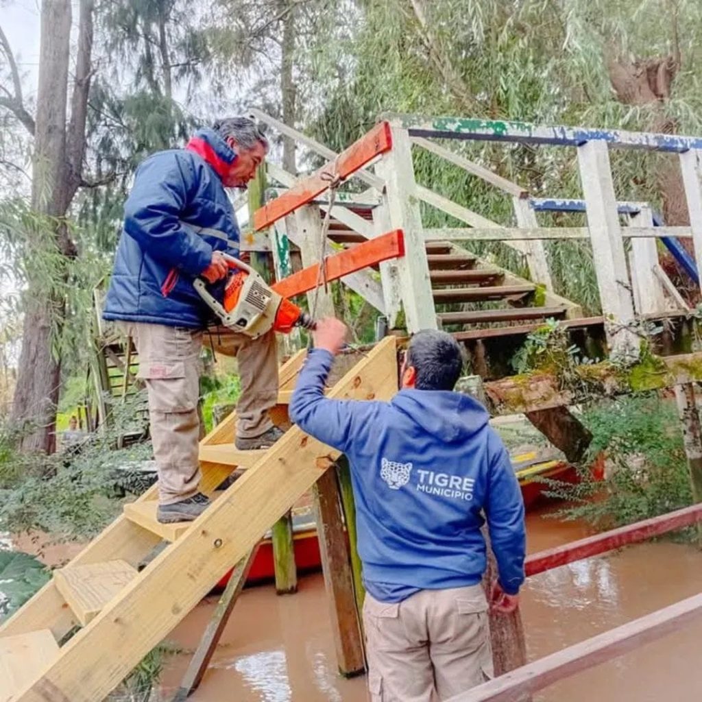 El Municipio llevó a cabo trabajos en diferentes puntos del Delta de Tigre, referidos a la reparación de luminaria en el camino vecinal sobre Río Carapachay y el emplazamiento de una nueva escalera en el puente del arroyo Santa Rosa.