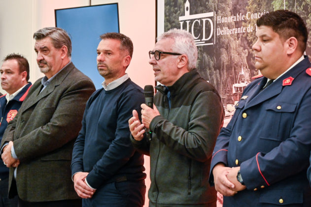 En el marco del Día Nacional del Bombero Voluntario, el intendente Julio Zamora y la secretaria de Desarrollo Social y Políticas de Inclusión, Gisela Zamora, reconocieron el trabajo dedicado a la comunidad que realiza la fuerza a lo largo y ancho del distrito. En el recinto del Honorable Concejo Deliberante, el jefe comunal destacó el rol fundamental que llevan adelante los cuarteles para dar respuestas a la comunidad.