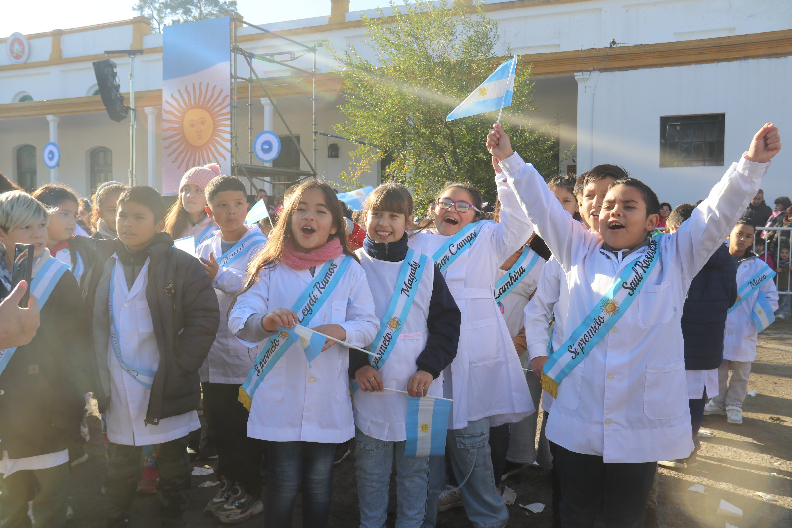 Más de 4.300 alumnos de 4to grado de escuelas de gestión estatal y privada de San Miguel y la región hicieron esta mañana su promesa de lealtad a la bandera nacional en el Regimiento de Artillería 1 «Brigadier General Tomás de Iriarte», en Campo de Mayo.