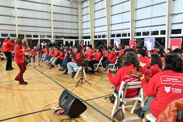 En el microestadio “Intendente Cdor. Ricardo Ubieto” el intendente de Tigre, Julio Zamora, y la secretaria de Desarrollo Social y Políticas de Inclusión, Gisela Zamora, acompañaron el primer encuentro del programa de Orquestas Infanto Juveniles del distrito. En el marco de los 15 años de la iniciativa local, participaron jóvenes de las siete formaciones vigentes, que ofrecieron una presentación conjunta ante vecinos y familiares.