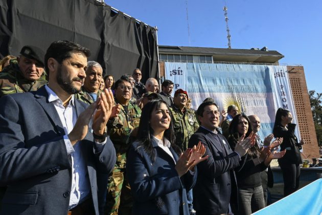 El acto se realizó en las inmediaciones del Palacio Municipal y contó con la presencia del intendente Leo Nardini; la secretaria general, Noe Correa; la secretaria de Gobierno y Monitoreo Institucional, Lic. María Luján Salgado; el subsecretario de Educación y Deporte, Lic. Daniel Morard; el director provincial de Consejos Escolares, Alejandro Perrone; y autoridades escolares, docentes y familias, reunidos en un clima de comunidad y celebración.