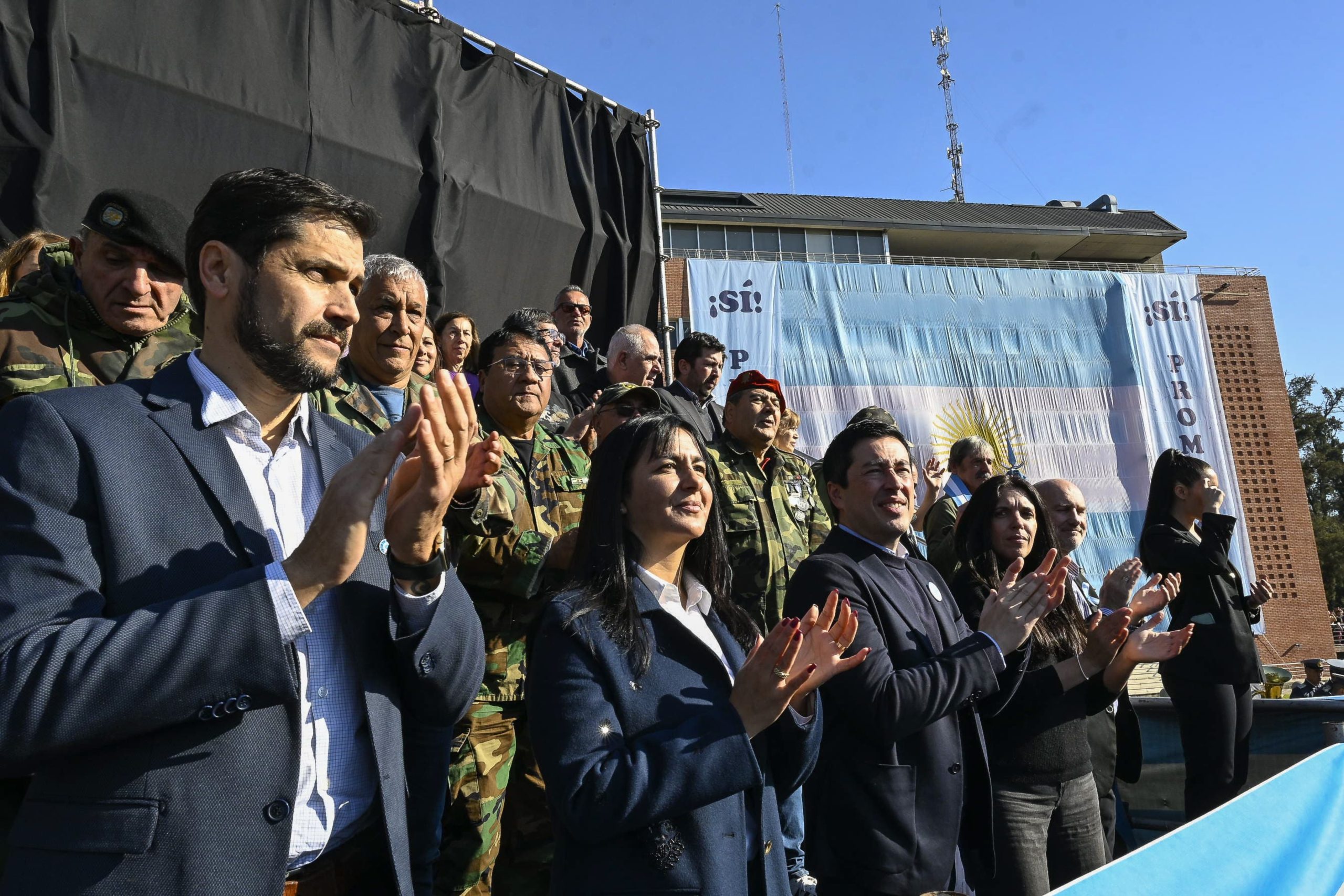 Para el encuentro, se desplegó una bandera argentina de 25 metros de largo, que cubrió el palacio municipal. Además, se montaron gradas especialmente construidas que permitieron a madres, padres y familias participar de ese momento tan significativo, desde donde pudieron registrar en fotos y videos el emotivo instante en que sus hijos realizaron la promesa. La jornada estuvo acompañada por la Banda de Música Militar “Combate de San Lorenzo” de la Escuela de Suboficiales del Ejército “Sargento Cabral”, que aportó un plus de orgullo patrio a la ceremonia.