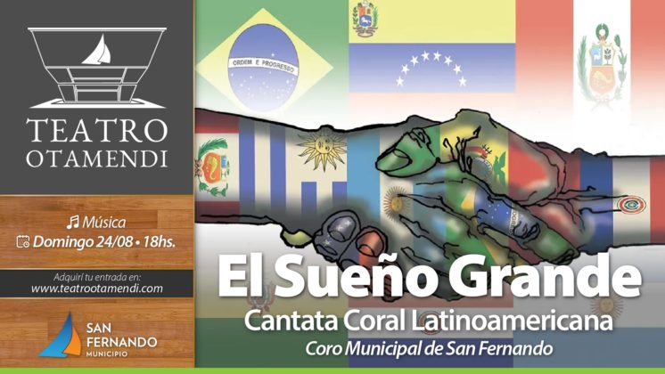 El Coro Municipal de San Fernando , junto a dos agrupaciones, el Coro Femenino Stella Maris y el Coral Notas de Vida, dirigidos por Ricardo Maresca, presentan la Cantata Coral Latinoamericana “ El Sueño Grande”.