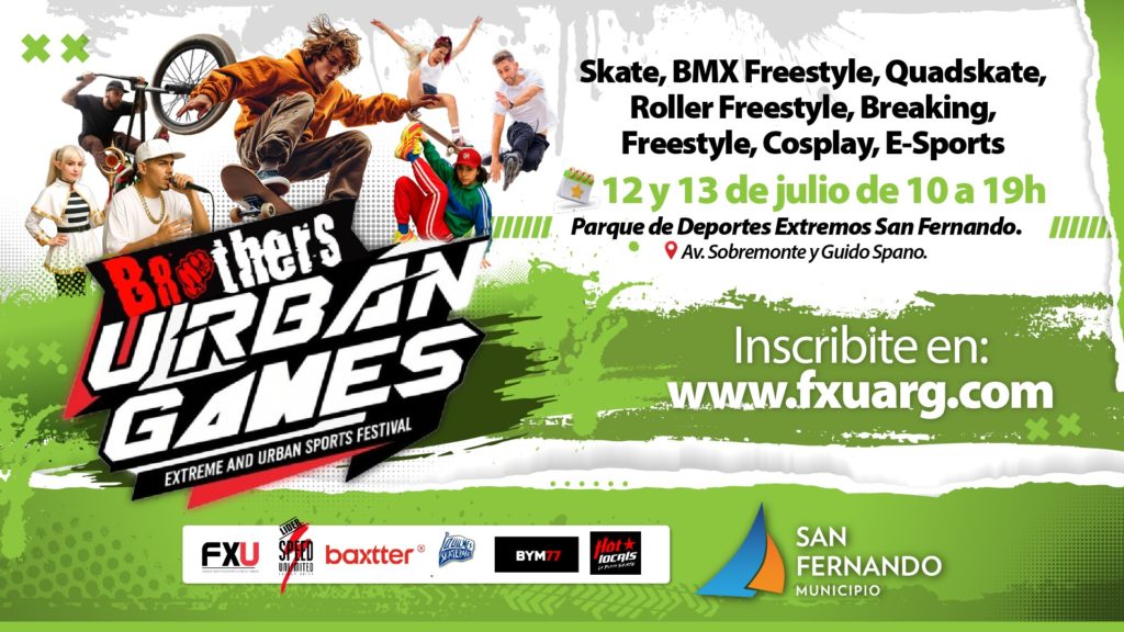 Cabe destacar que “Brothers Urban Games” es organizado en conjunto entre la Secretaría de Deportes del Municipio de San Fernando y la Federación de Deportes Extremos y Urbanos (FXU), con la colaboración de importantes patrocinadores: Speed Unlimited, Baxtter, ProTec, Bym77, Hot Locals, Marley, y el Quilmes Skatepark.