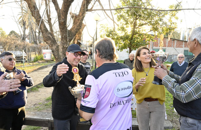 Minutos antes del evento, el intendente presenció un campeonato de tejo organizado por la comisión directiva del Centro de Jubilados Amigos del Talar y conversó con los competidores. Luego, el jefe comunal acompañó la ceremonia donde se reconoció a los comerciantes con más de 50 años de trayectoria en la ciudad. Se valorizó el trabajo de históricos negocios de diferentes rubros como ferreterías, carnicerías, corralones, librerías, bazares, peluquerías, kioscos, gomerías, supermercados, panaderías, entre otros.