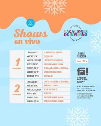 Estas vacaciones de invierno la Municipalidad de San Miguel brindará shows en la Fábrica del Arte (FA), ferias de emprendedores, muestras de arte, cine en el Teatro Marechal, actividades en la Reserva Natural Urbana “El Corredor”, circo en plazas y una colonia tecnológica.